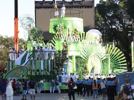 Império Serrano abandona carro alegórico e ocupantes terminam desfile no chão