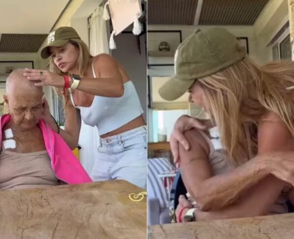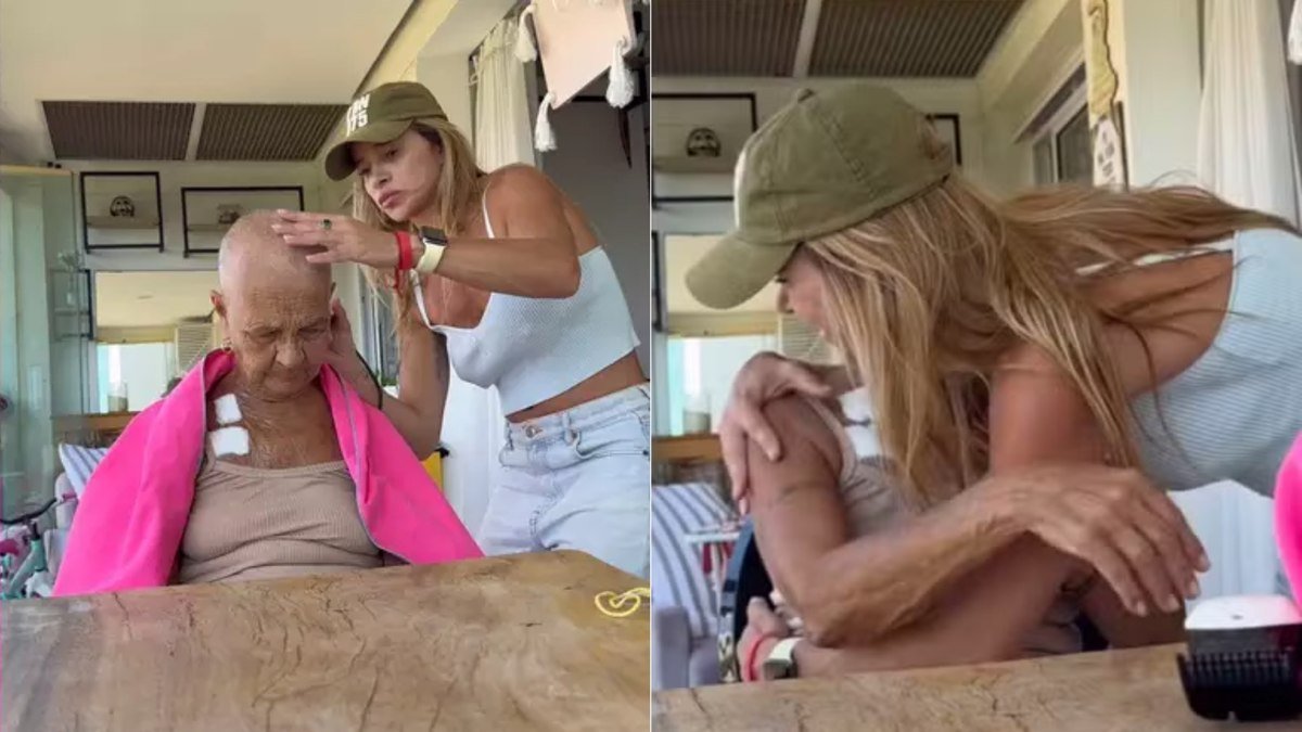 No registro, a veterana surge inicialmente com alguns fios, mas resolveu tirá-los. Depois de finalizar a tarefa, mãe e filha se abraçam. A assistente de palco do ‘Domingão’ compartilhou uma dedicatória à matriarca na legenda da publicação.