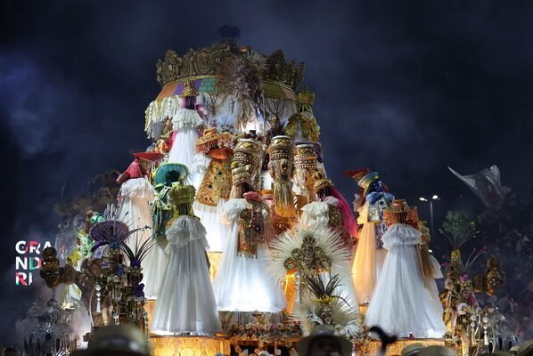 Integrantes da Acadêmicos do Grande Rio se apresentam durante os desfiles do Carnaval de 2025