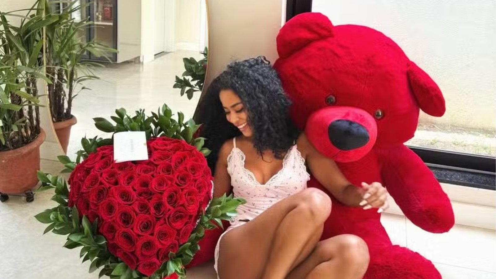• Lorena Maria ganha buquê gigante e ursinho e faz mistério sobre remetente