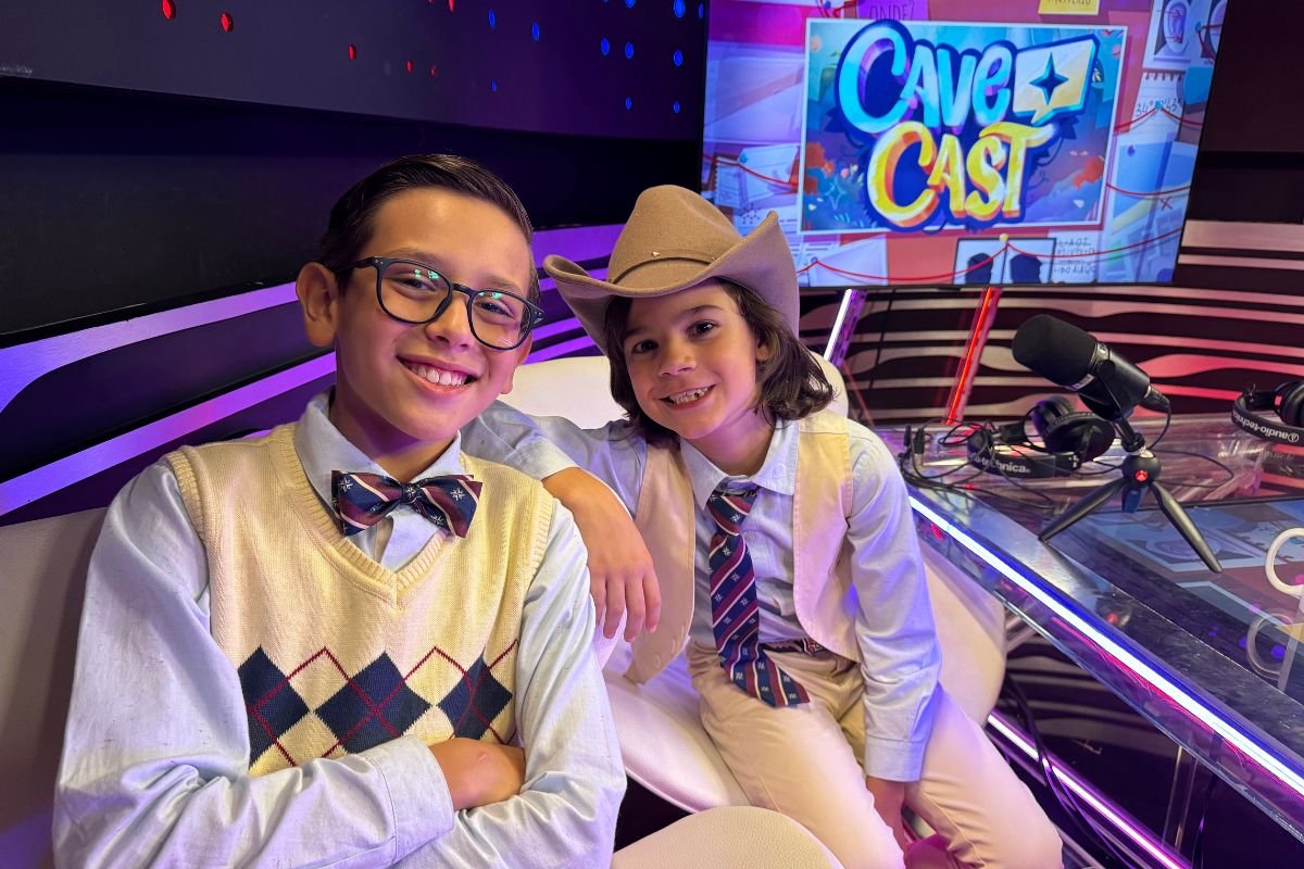 Lucca Almeida e Bernardo Prado, atores mirins de “A Caverna Encantada”, são os convidados do podcast “CaveCast” desta terça-feira, 29 de abril, apresentado por Nicholas Torres e Laura Castro. O episódio vai ao ar às 21h30, no YouTube da TV Zyn, canal jovem do SBT, e também nas principais plataformas de áudio.