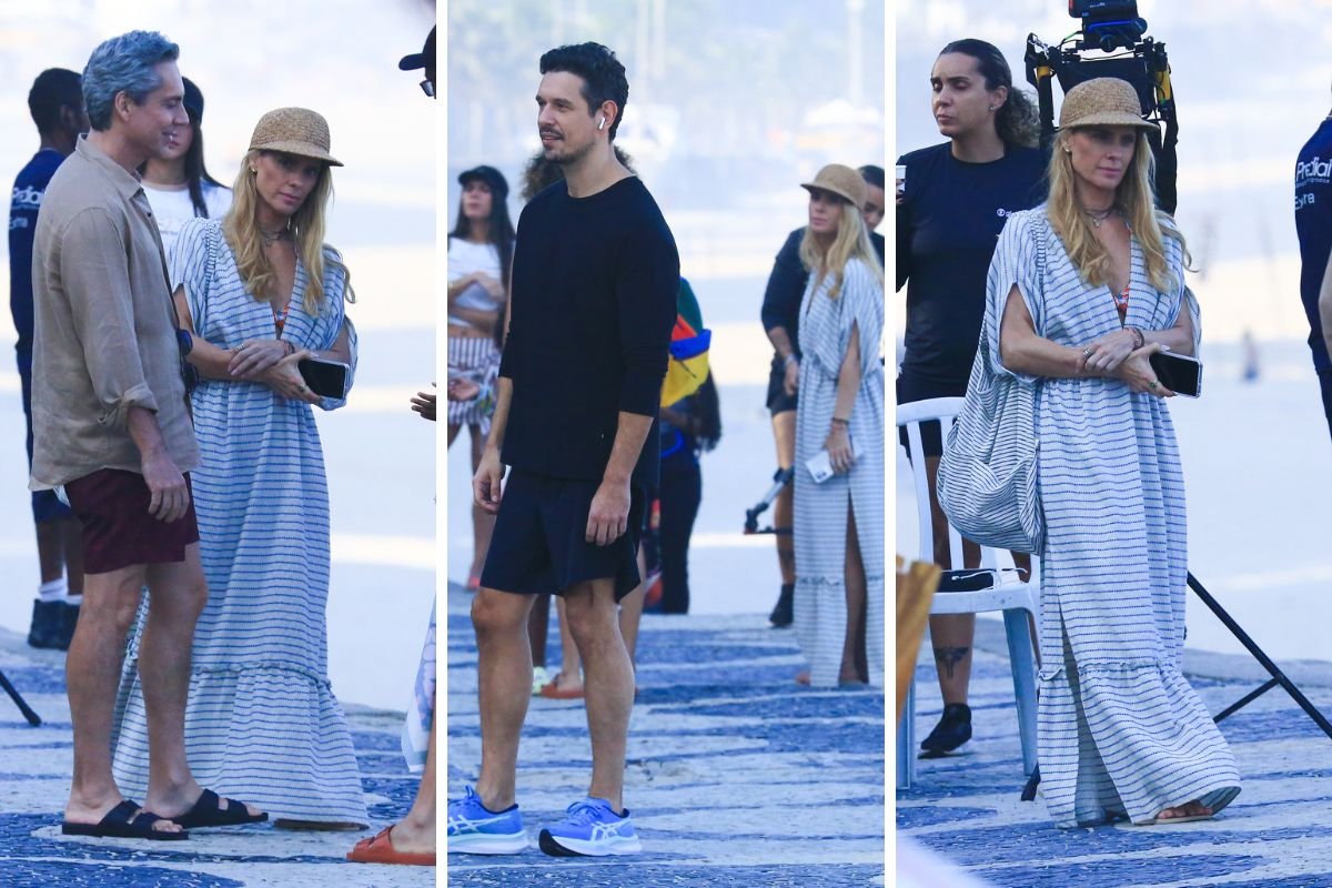 Concentrados, os atores estavam acompanhados da produção do folhetim. Enquanto Nero e João usavam roupas esportivas, Dieckmann estava com um vestido leve e comprido.