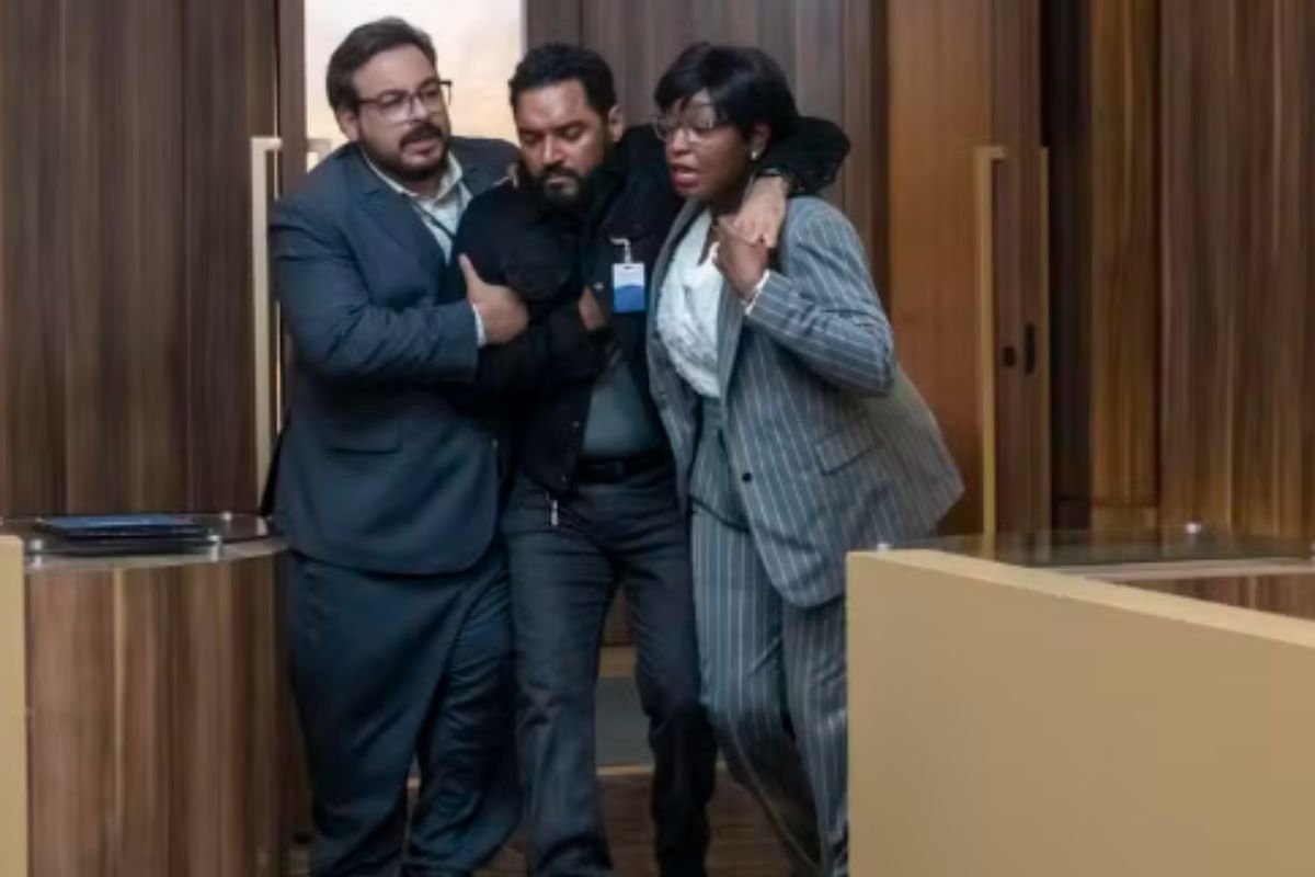 Mário Sérgio sofre um ataque cardíaco e é atendido por paramédicos, que são chamados às pressas. A movimentação atrai Odete (Debora Bloch) e Marco Aurélio, que se encaram em silêncio ao verem o funcionário desacordado.